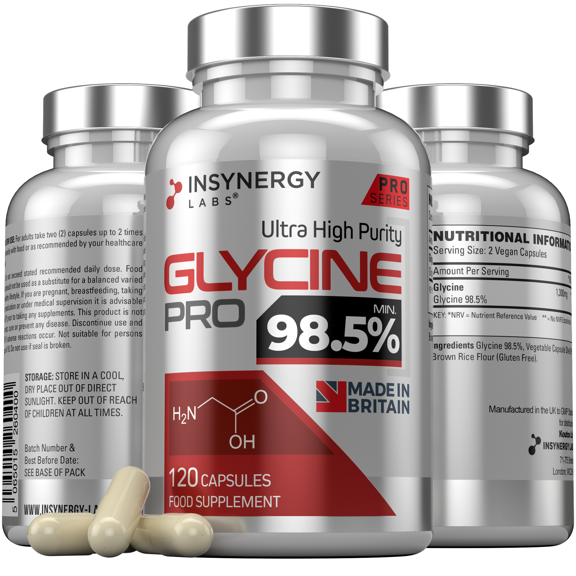 There is no single “best.” Consider purity and labeling, third-party testing, capsule type, and your dietary preferences. InSynergy Glycine Pro contains 98.5% glycine and uses a plant-based HPMC capsule; see Supplement Facts for details.